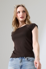21890 KADIN RİB.YAKA VE KOLAĞZI BİYELİ REGLAN KOL KARYOKALI BİSİKLET YAKA TSHIRT