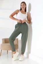 21936 KADIN 3 İP PENYE KOMPAKT ŞARDONLU BELİ KAŞKORSELİ KARYOKA KASAP CEPLİ PAÇASI 5 CM LAST EŞOFMAN PANTOLON