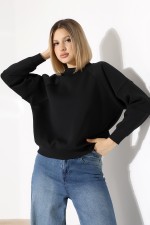 21970 KADIN 3 İP PENYE KOMPAKT ŞARDONLU REGLAN KOL KOLLARI KAŞGORE PARÇALI DİK BİSİKLET YAKA SWEATSHIRT