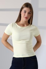 21996 KADIN KAYIK YAKA FULL LYC KOMPAKT PENYE KISA KOL TSHIRT