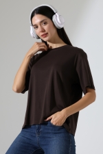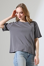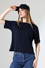 21964 KADIN PENYE COMP LİKRASIZ RİB PAMUKLU KISA KOL BİSİKLET YAKA TSHIRT