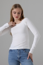 22195 KADIN REGLAN KARYOKALI KAYIK KALIN YAKA FULL LYC KOMPAKT PENYE RİB UZUN KOL TSHIRT