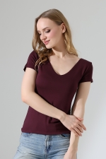 22175 KADIN TULUM V YAKA FULL LYC VORTVİSK KISA KOL TSHIRT