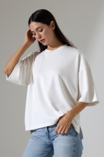 22286 KADIN YARIM KOL OVERSİZE YANLARI YIRTMAÇLI BİSİKLET YAKA DOUBLEFACE YUMUŞAK DOKU TSHIRT