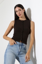 22077 KADIN FULL LYC RİB 10 DÜĞMELİ KOLSUZ YELEK