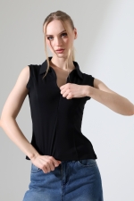 22112  KADIN GÖMLEK YAKA KOLSUZ GİZLİ FERMUARLI  FULL LYC RİBANA YANLARI KUPLU PARÇALI ETEĞİ VOLANLI TSHIRT