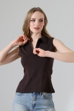 22112 KADIN GÖMLEK YAKA KOLSUZ GİZLİ FERMUARLI FULL LYC RİBANA YANLARI KUPLU PARÇALI ETEĞİ VOLANLI TSHIRT