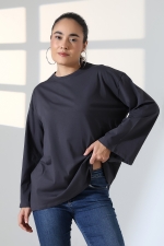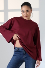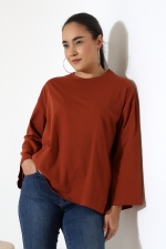 22139 KADIN UZUN KOLAĞZI GENİŞ SALAŞ OVERSİZE PAMUKLU BLUZ
